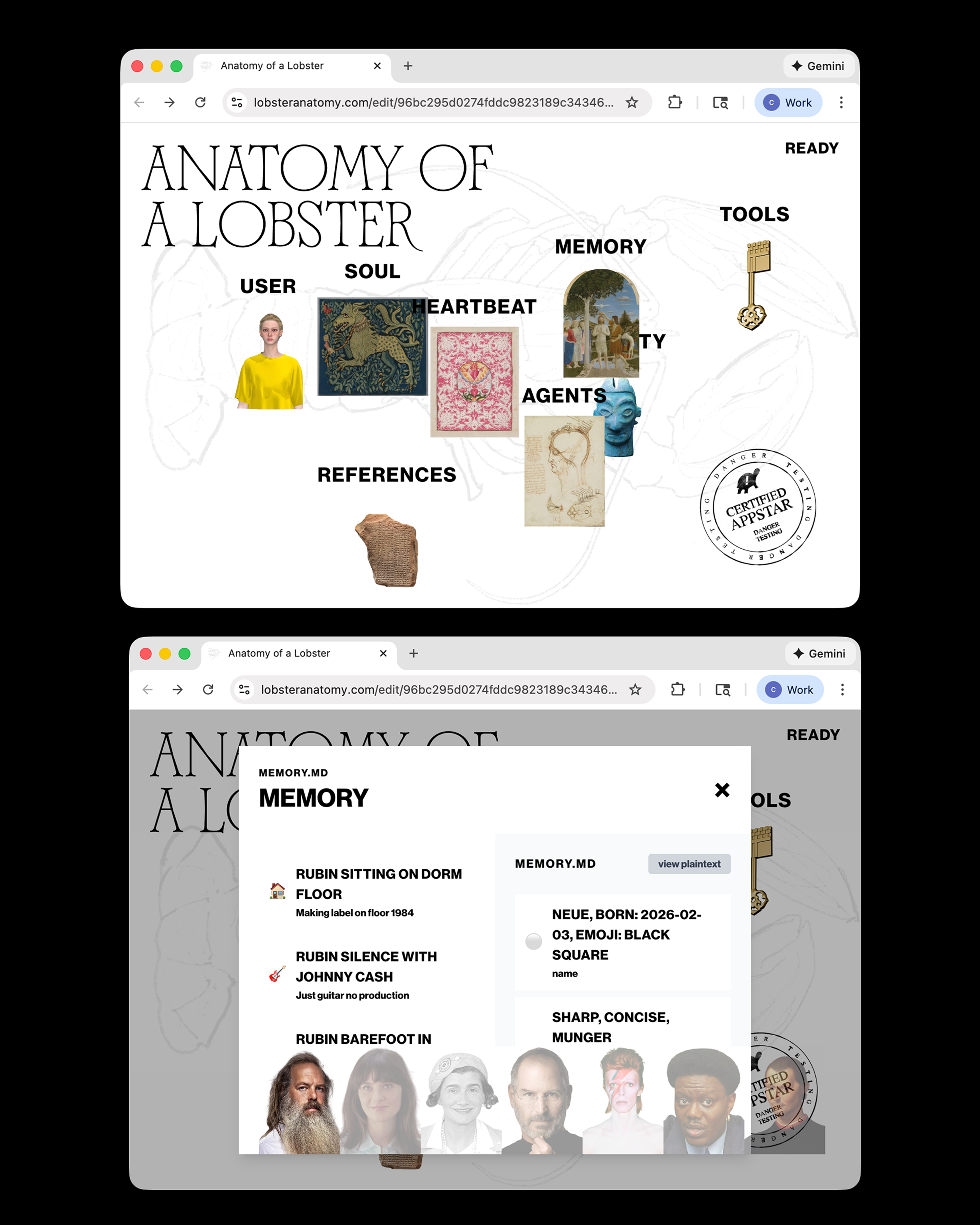 This was the Danger Testing drop of February 5th 2026, a couple weeks after Moltbook had appeared. Certified Appstar, made in 48h.